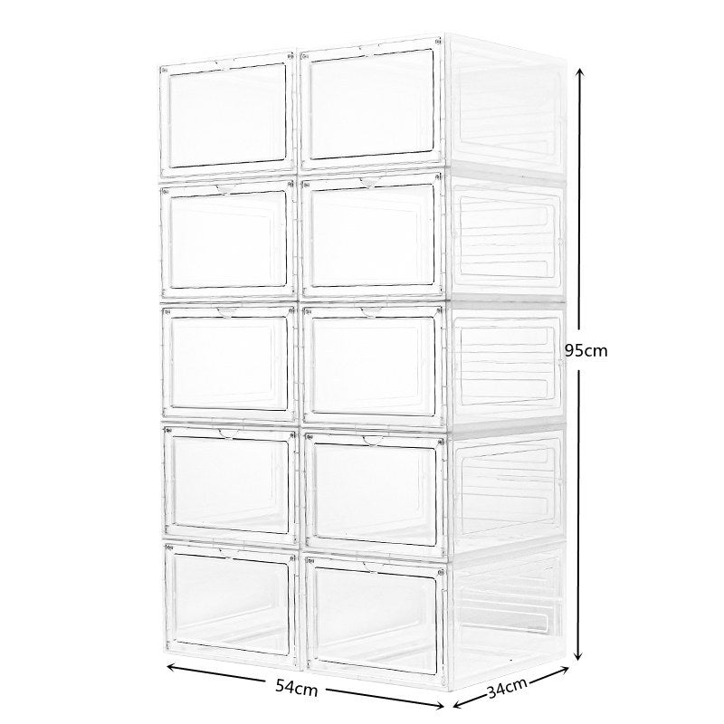 The design lets you stack boxes securely, using vertical space instead of floor area. Think of it as creating a shelf for your footwear where each level holds a pair, so small closets and dorm rooms suddenly feel more open and orderly.